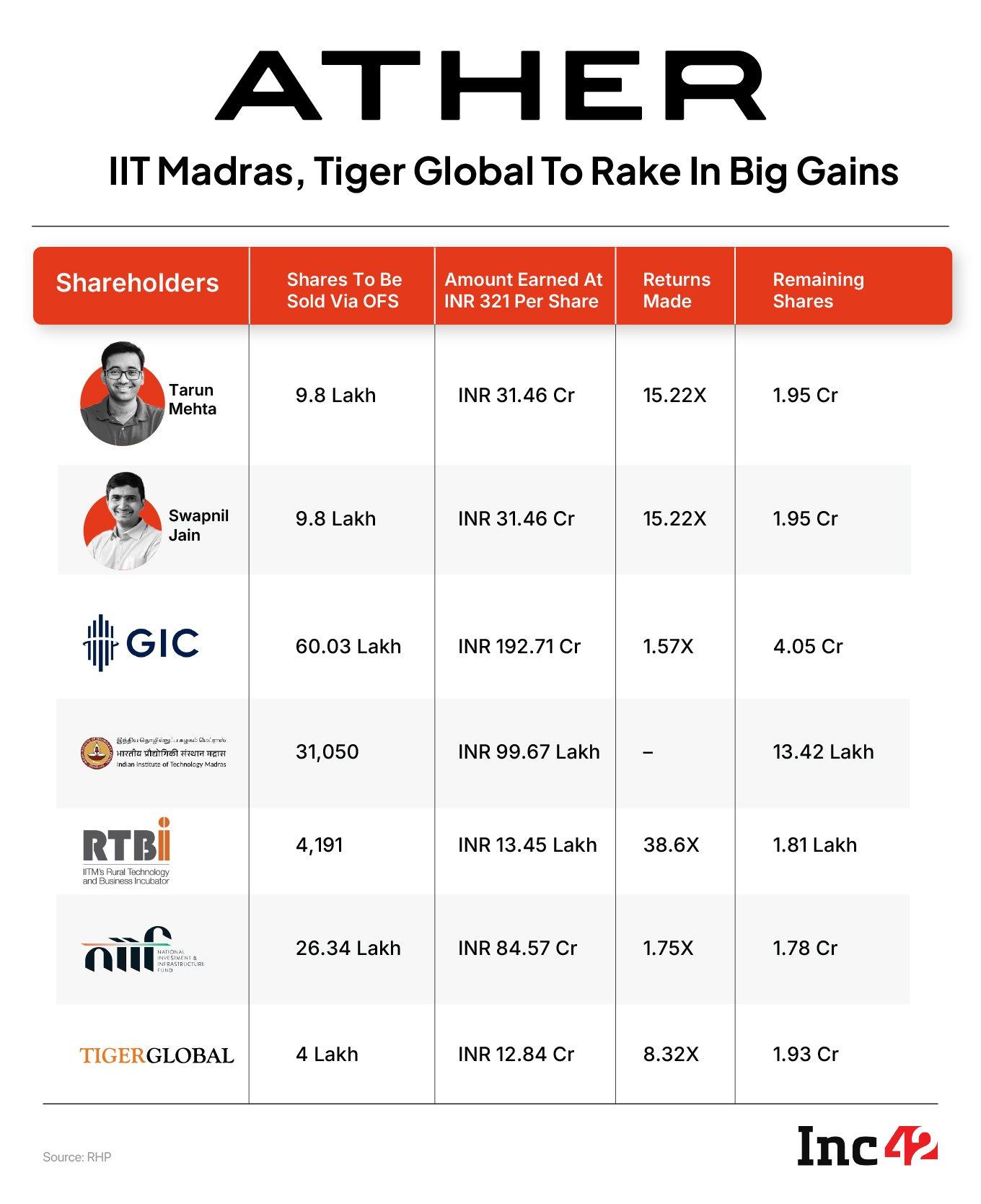 [ad_1] EV major Ather Energy’s cofounders Tarun Mehta and Swapnil Jain are set to rake in 15.2X returns each by selling a portion of their shares...