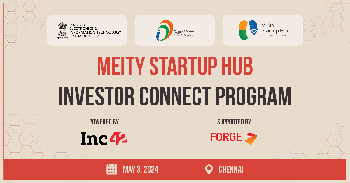 [ad_1] SUMMARY The MeitY Startup Hub’s ‘Investor Connect Programme’ will be held at Forge Fast Accelerator at IIT Madras Research Park in Chennai on May 3,...