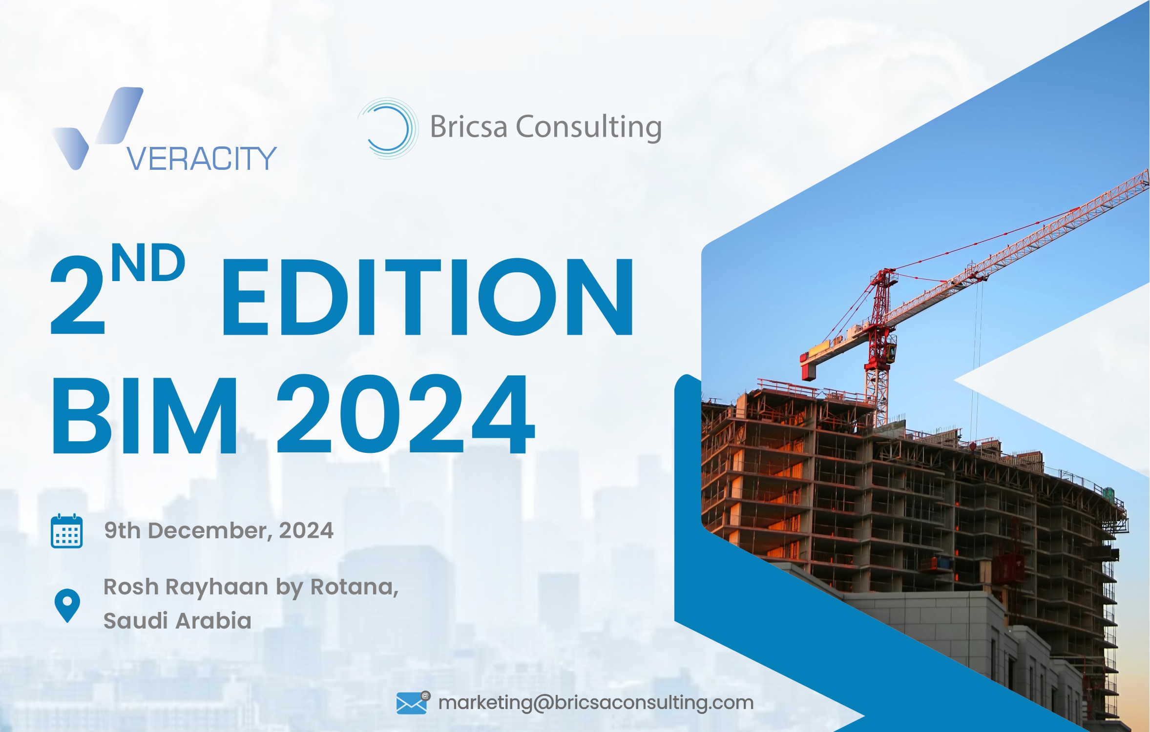Bricsa Consulting is honoured to announce BIM 2nd Edition 2024 conference. A pivotal 1day event scheduled for 9th December 2024 at Rosh Rayhaan Rotana ,Saudi Arabia....
